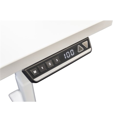White top white frame. Sleek, modern European design. 25mm thick, white melamine finish worktop, with cable port. Ultra-quiet electric powered dual motor. Lift capacity- Deluxe 122kg. Speed 35mms. Safety - Auto reverse on both up and down movements. 3 stage rectangular leg. One touch operation with 3 programmable settings in addition to up-down. Also available with a black frame. 10 Year Manufacturer's Warranty. Delivery, installation and assembly charges may apply to furniture. Please enquire to confirm.
