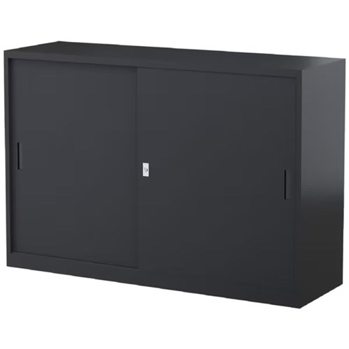 Steelco Sliding Door Cabinet 2 Shelves 1500W x 465D x 1015mmH Graphite Ripple