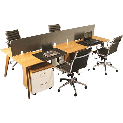 American Walnut top with solid timber legs. Overall Dimensions: 2800W x 1200D x 720mmH. Optimises space while still creating a cooperative team dynamic. You can convert this natural looking workstation into four private office desks with the help of clean screens, to suit your ongoing needs. 10 Year Manufacturer's Warranty. Delivery, installation and assembly charges may apply to furniture. Please enquire to confirm.
