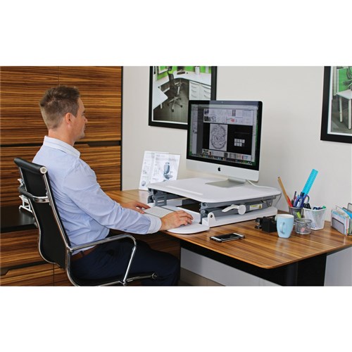 Sylex Arise Deskalator Sit-Stand Riser 680W x 590D x 150-500mmH White 2574417 In Stock Low Stock Low Stock Please See Attributes