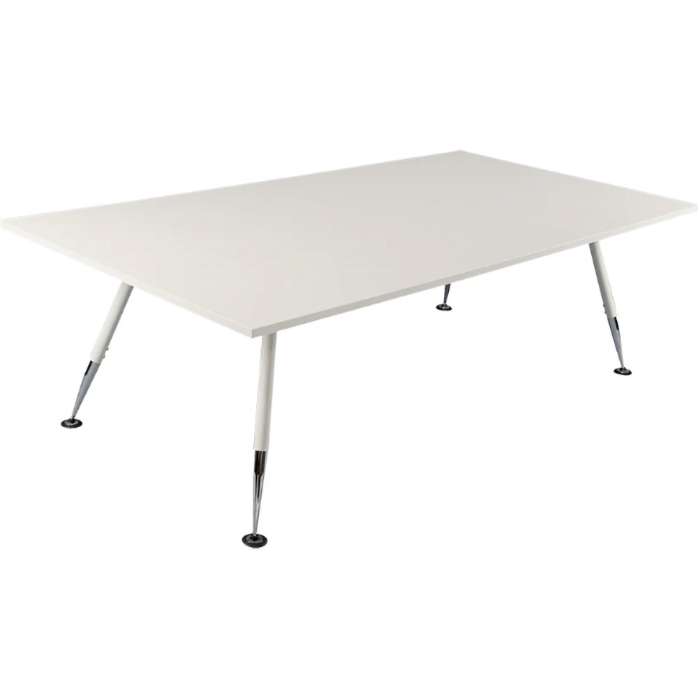 A modern and elegant boardroom table with white top, white powder coated legs and chrome feet. Durable and well constructed for the corporate meeting or boardroom. Stylish modern legs. 25mm white tops with abs edge. 10 Year Manufacturer's Warranty. Delivery, installation and assembly charges may apply to furniture. Please enquire to confirm.