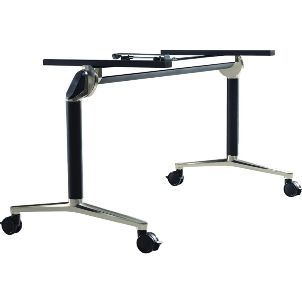 Aluminium flip table base only. Suits a top length 1450-2400mm. Suits a top depth from 660-980mm. Heavy duty lockable castors. As the table top is elevated the legs splay out, reducing depth and allowing the tables to stack straight on for storage, rather than offset on a diagonal. 10 Year Manufacturer's Warranty. Delivery, installation and assembly charges may apply to furniture. Please enquire to confirm.