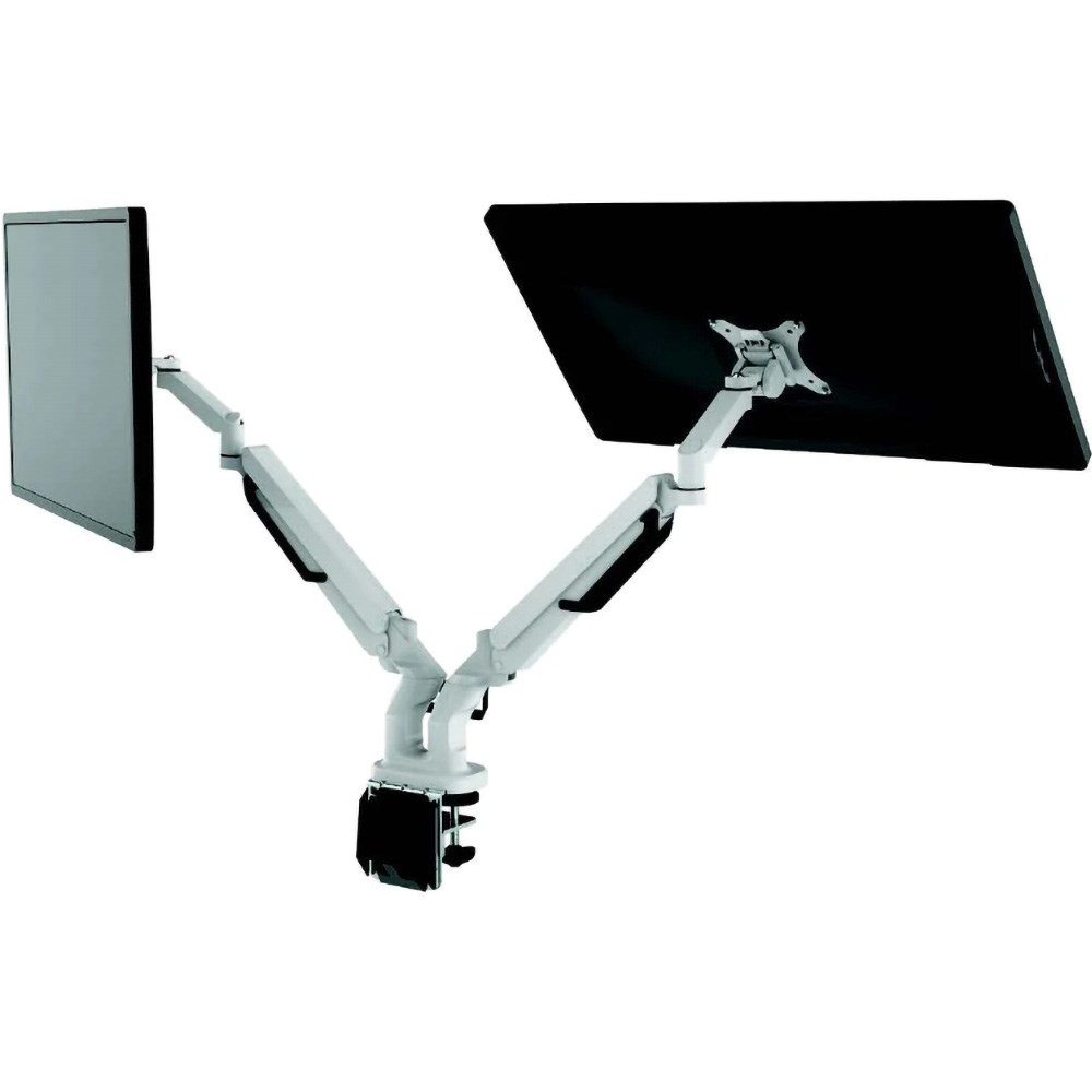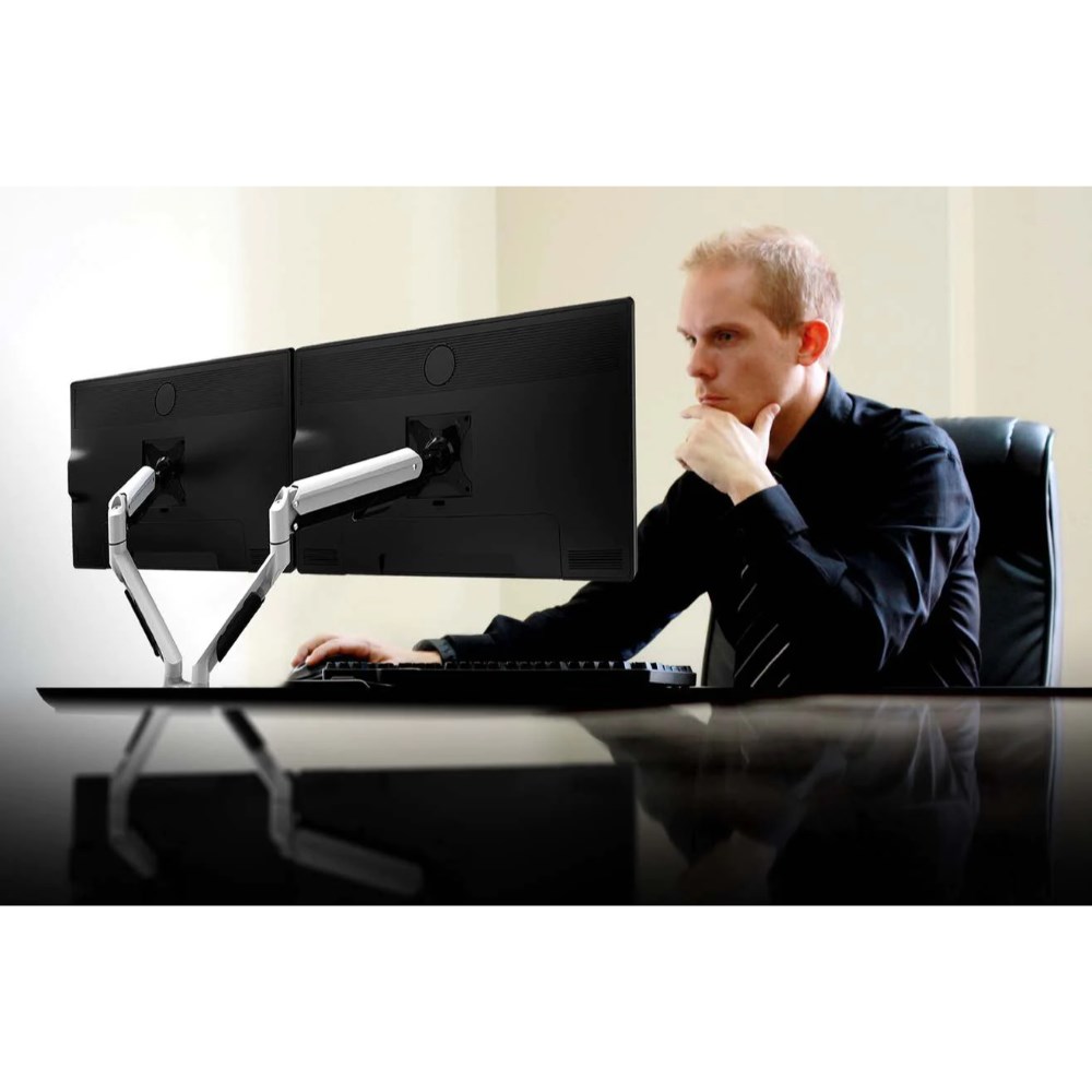 Supports large monitors up to 32 inches. Made of ultra-strong, ultra-light aircraft aluminium. Simple and stylish design. VESA compatible mount fitted with quick release for quick and easy attachment. 360 degree free switch between portrait and landscape orientation. Independent balanced gaslift height adjustable arm. Sleek and streamlined appearance perfectly complements any contemporary workstation. Both clamp and grommet mount included in the box. 10 Year Manufacturer's Warranty.