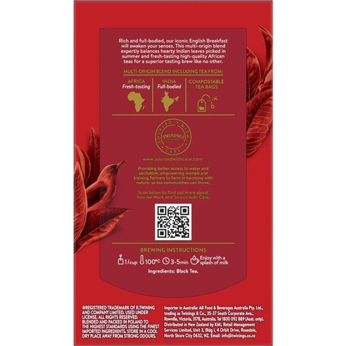 Premium teas that are ideal for everyday drinking. This full-bodied blend is rich and invigorating. One tea bag serves one cup. Store in a cool dry place.
