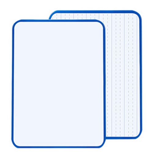 Plain one side and dotted thirds the other. Lightweight magnetic whiteboards ideal for agile education. Great for collaborative group and individual focused learning. Add the optional Magnetic eraser/marker to make a complete individual student whiteboard solution, please see product 3039136. Size: 420W x 297mmH. Sturdy navy blue moulded frame. Save paper and allow students to practice skills. Use any whiteboard markers, wipes clean easily.