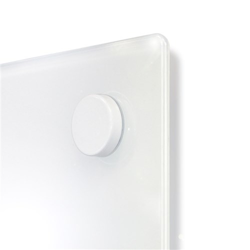 A contemporary alternative to traditional white boards highlighted by the translucency and elegance of premium glass. Toughened safety glass, non-porous surface will not ghost or stain and works with standard dry-erase markers. Tempered glass is borderless to create clean lines, uncluttered and ultra modern appearance. Polished edge and 6mm rounded corners. 12mm holes for fixing are space 35mm from edges. Includes clear acrylic pen tray and 5 super strong glassboard magnets. 50 Year warranty on erasing surface.