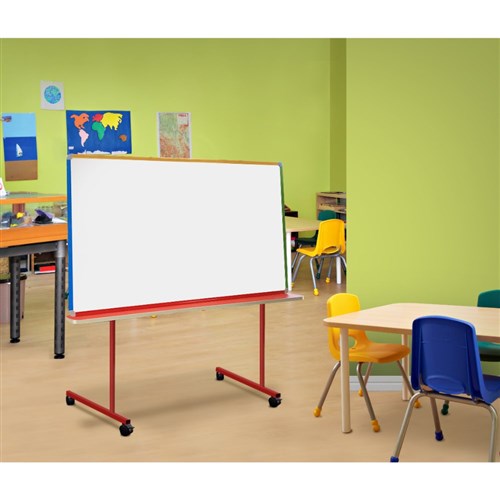Magnetic whiteboard with bright colourful frame. Wide built in shelf easily solves the problem of showing those hard to hold books. With a multi colour frame which promotes attention in students, this whiteboard is great for use in Daycare, Kindergartens, Pre-Primary and Primary schools. Locking castor wheels. Easy to move around the room or to another room as required. Delivery, installation and assembly charges may apply to furniture. Please enquire to confirm.