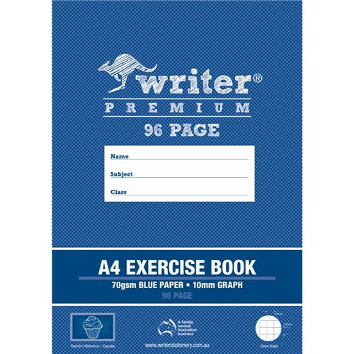 Writer Premium Exercise Books feature heavy duty covers, high quality white 70gsm paper. Blue paper. Teachers reference Cupcake.